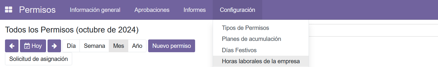 Para tener la opción de Entradas de Asistencia, necesita instalar el módulo de Asistencia de Nómina.
