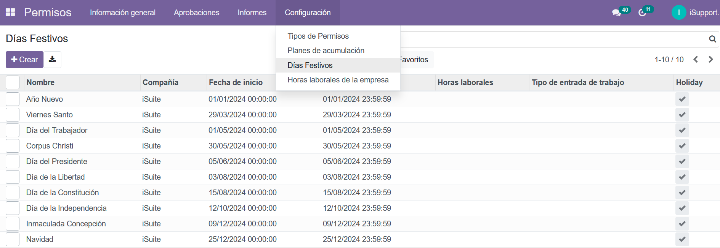 También puede crear un departamento desde el módulo Contratación, vaya a Contratación > Configuración > Departamentos.